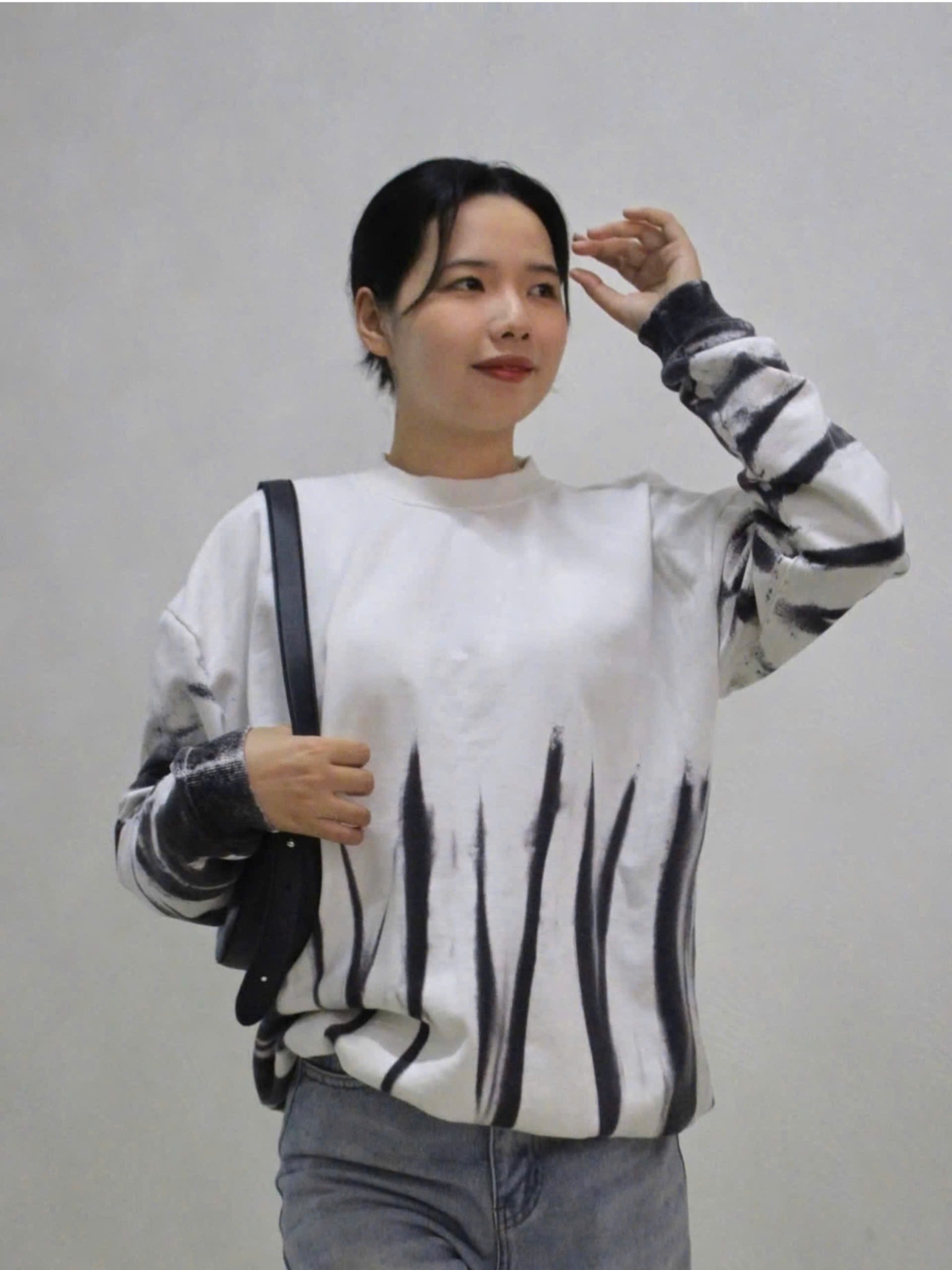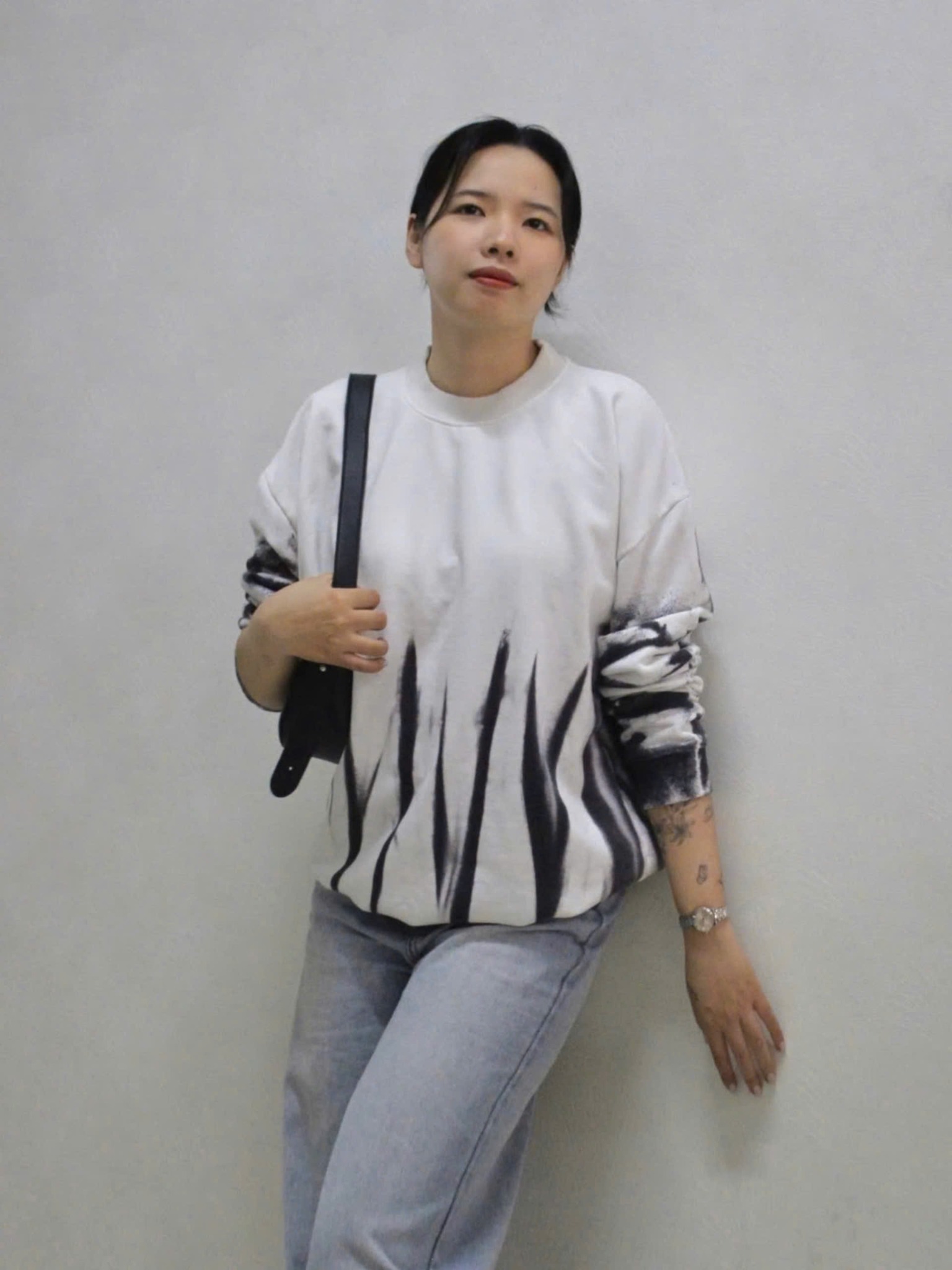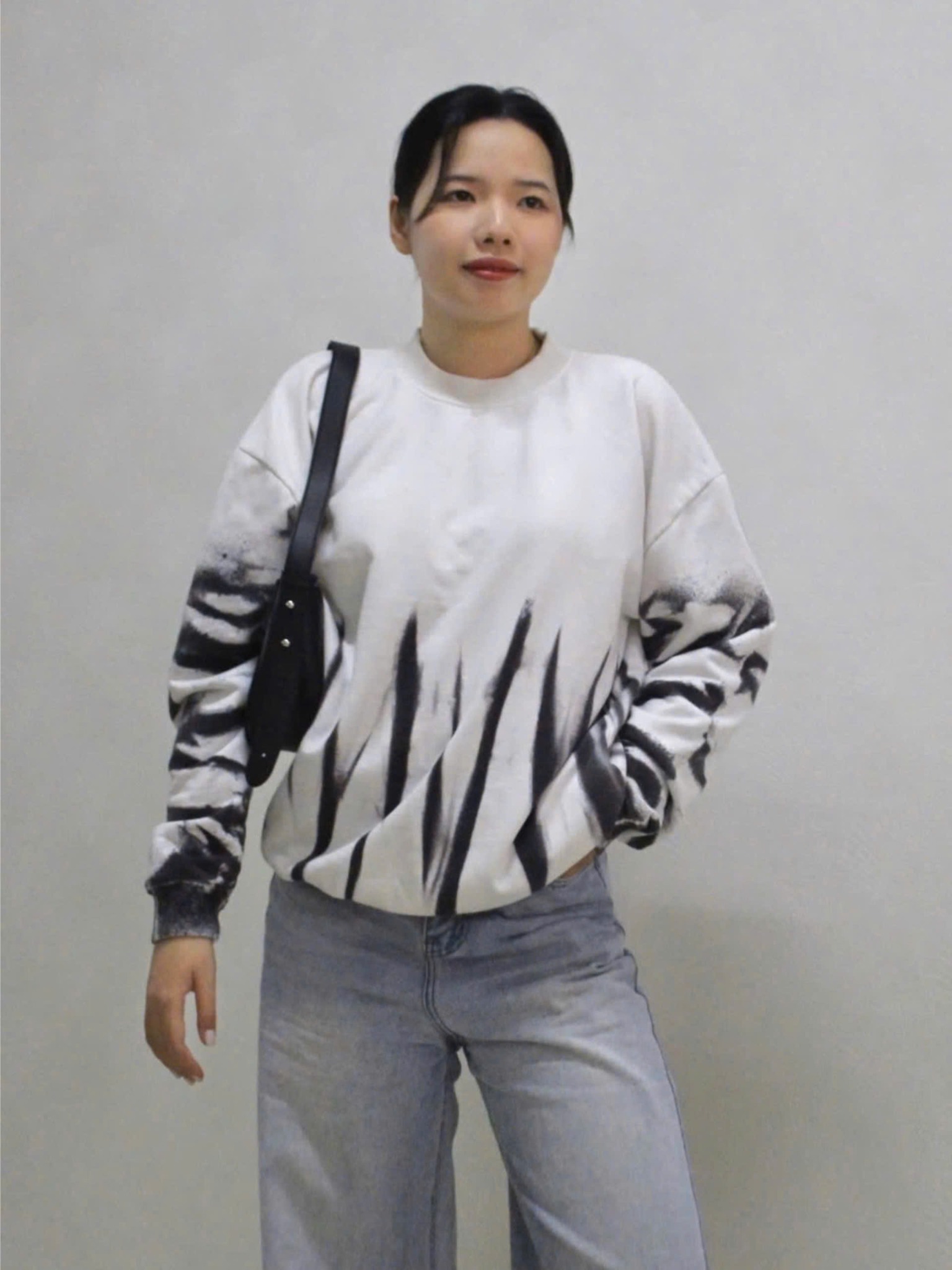 - Họa tiết : Áo Sweater trắng phun đen