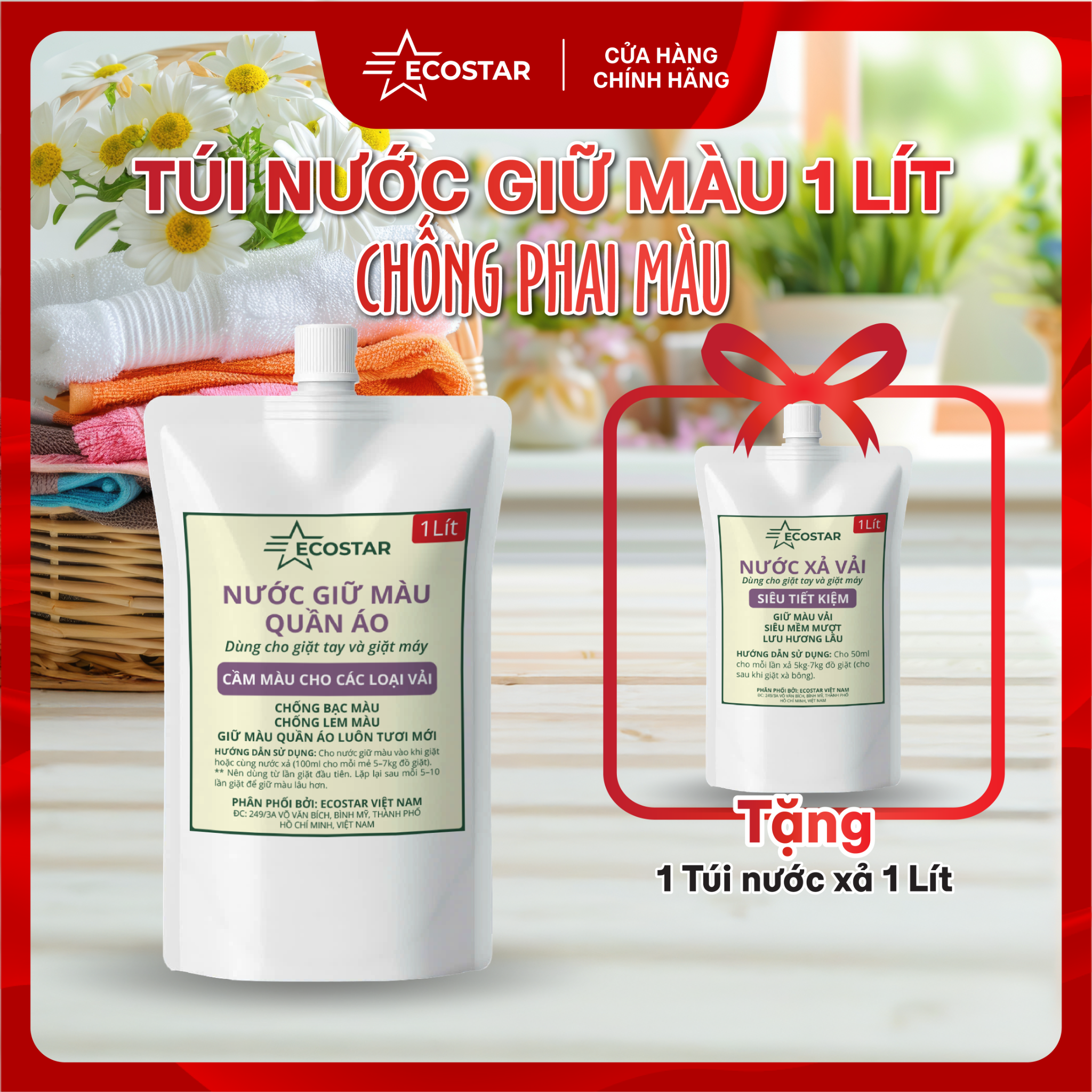 Nước Giữ Màu Chống Phai Ecostar 1L Tặng Nước Xả Vải 1L | Giữ Màu Bền – Mềm Vải – Thơm Lâu