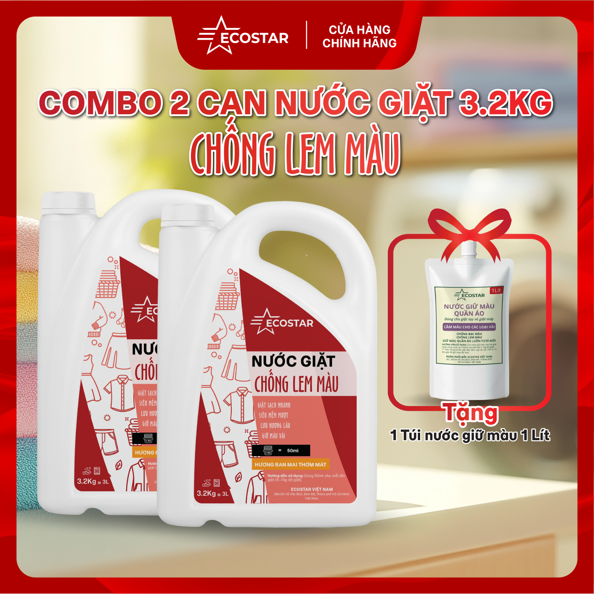 Combo 2 Can Nước Giặt Ecostar 3.2L là giải pháp tiết kiệm tối đa cho gia đình đông người, cửa hàng giặt ủi nhỏ hoặc người có nhu cầu giặt đồ thường xuyên. Công thức chống lem màu chuyên biệt giúp làm sạch hiệu quả quần áo màu mà vẫn giữ màu bền đẹp, hạn chế phai màu và loang màu sau nhiều lần giặt.