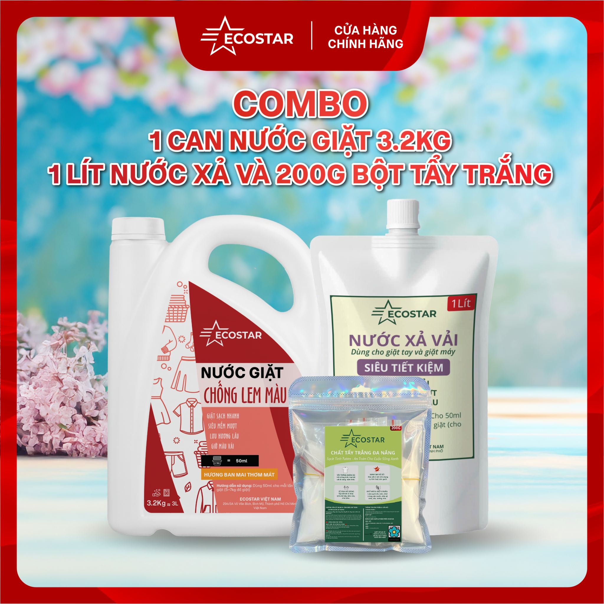 Combo Giặt – Tẩy Trắng – Xả Vải Ecostar là giải pháp chăm sóc quần áo toàn diện và tiết kiệm, phù hợp cho gia đình giặt đồ thường xuyên, đặc biệt là đồ trắng, đồ sáng màu và đồ mặc hằng ngày.