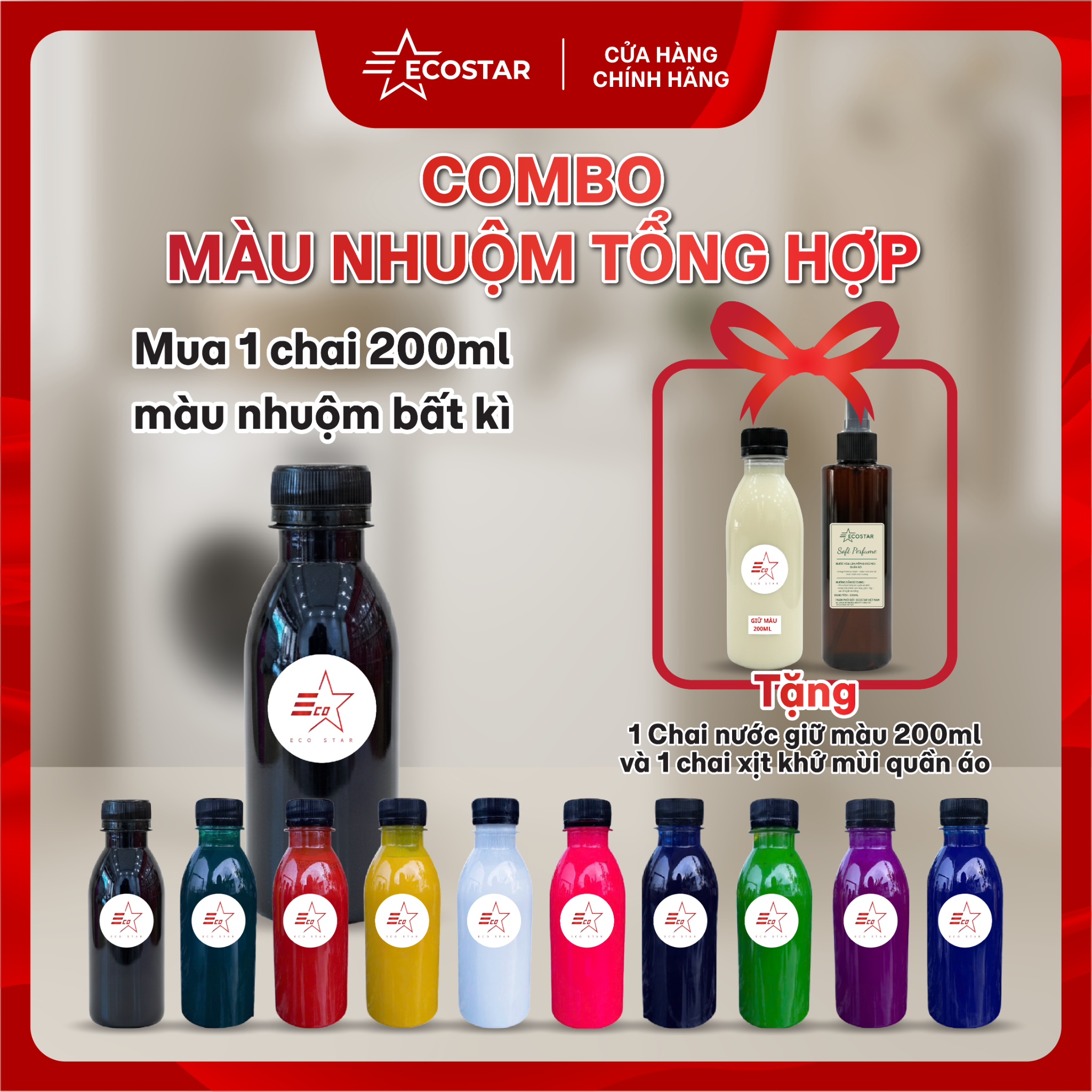 COMBO NHUỘM VẢI HANDMADE ECOSTAR (1 MÀU TÙY CHỌN) KÈM NƯỚC CẦM MÀU 200ML & XỊT KHỬ MÙI TỨC THÌ - DƯỠNG VẢI SÁNG TẠO