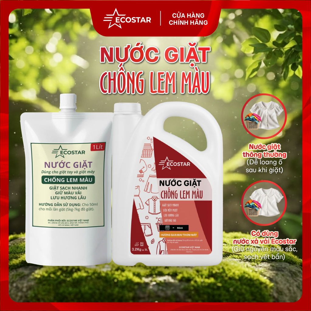 🌿 NƯỚC GIẶT ECOSTAR CHỐNG LEM MÀU QUẦN ÁO