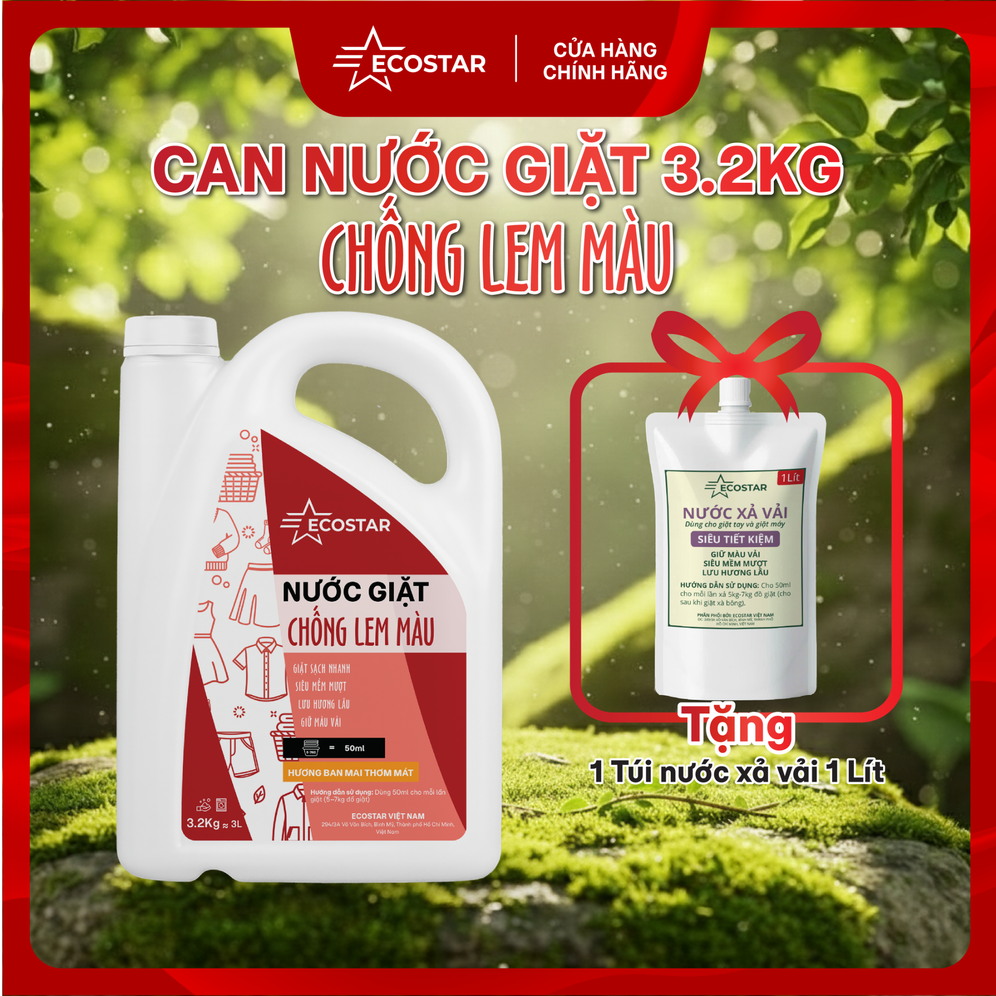 🧺 Nước Giặt Ecostar Chống Lem Màu 3,2Kg