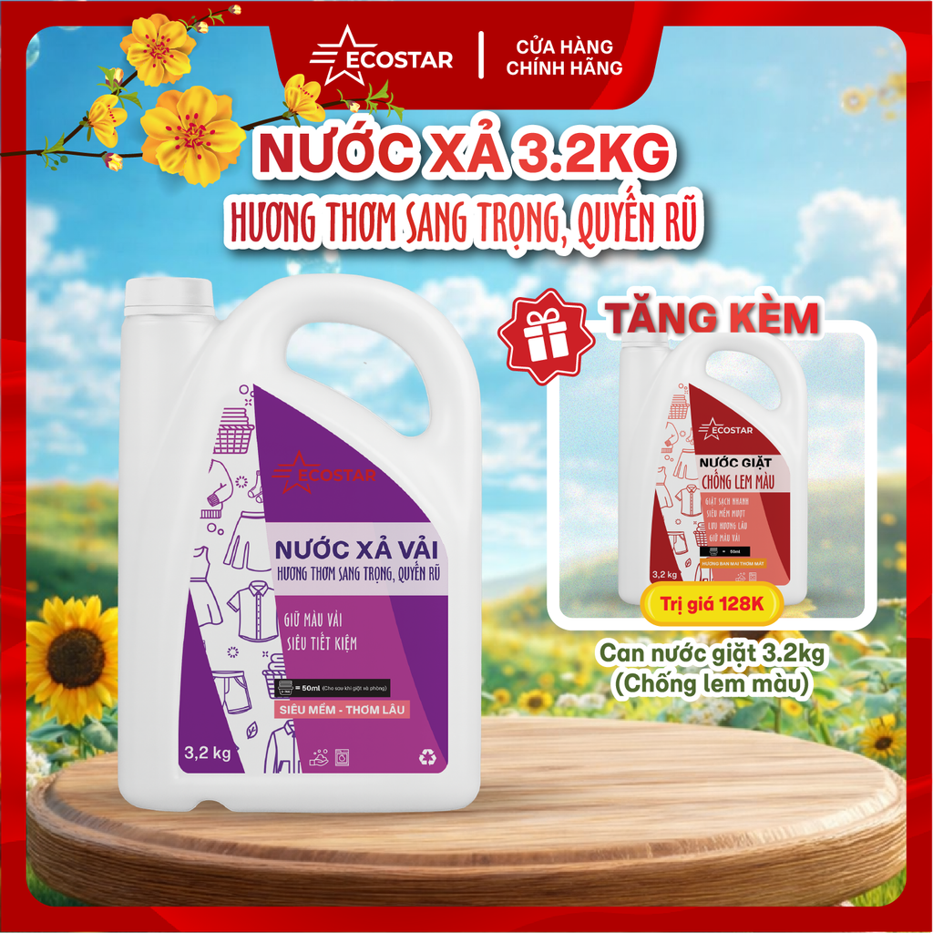 Bạn muốn quần áo lúc nào cũng mềm mại như lụa và thơm sang chảnh như xịt nước hoa? Đừng bỏ lỡ siêu phẩm Nước xả vải Ecostar với ưu đãi "mua to tặng to" cực khủng này!